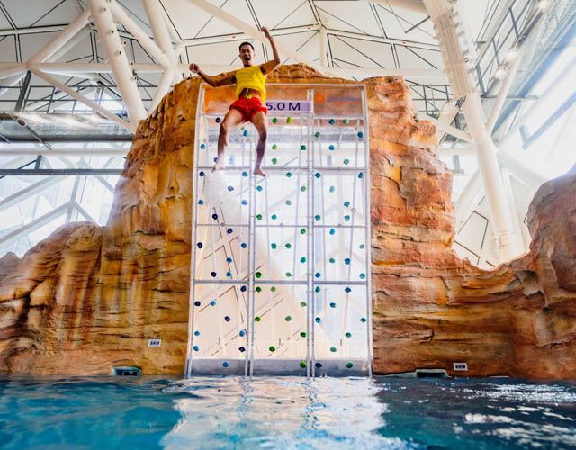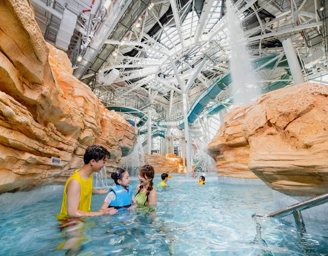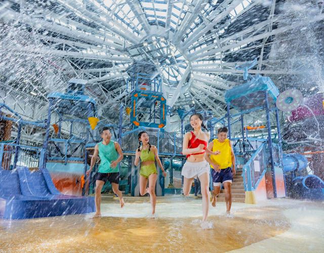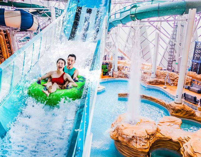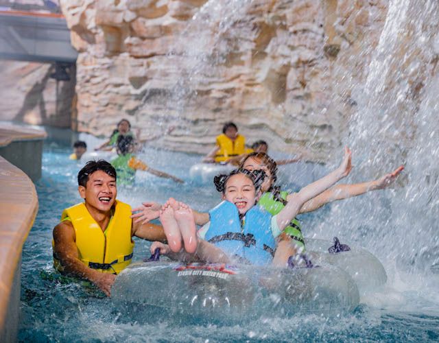 瞩目全城、全澳唯一室内水上乐园室内项目由水上乐园行业领导者、加拿大白水公司所规划设计。配合全新酒店主题及整合景点融入建筑,独具匠心,延伸滑水道至室外以创造更大空间感,365天无间呈献超凡水上玩乐设施。所有年龄层玩家均可尽享欢乐难忘的水上活动。